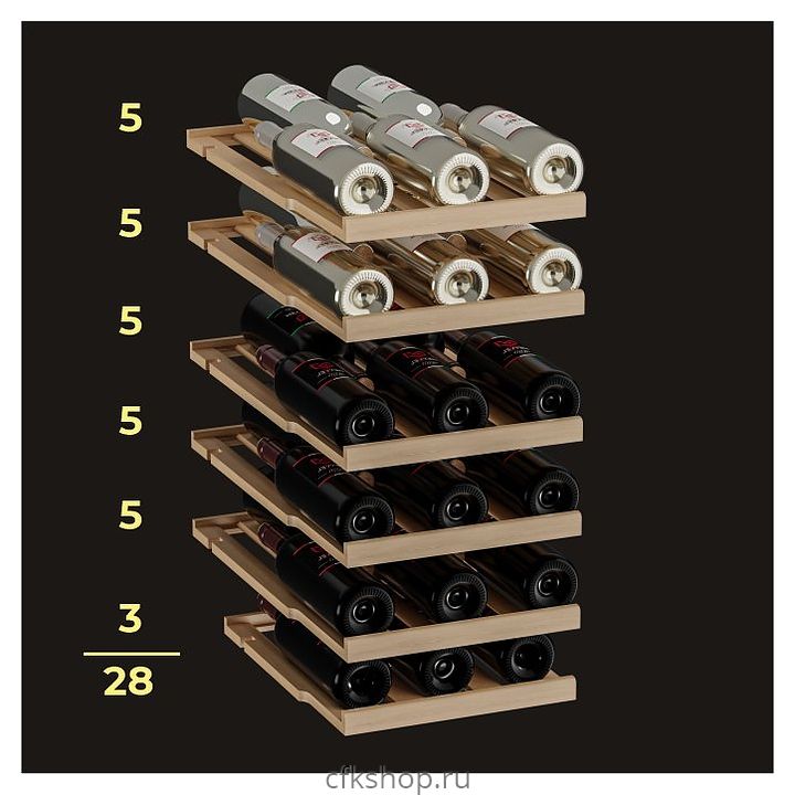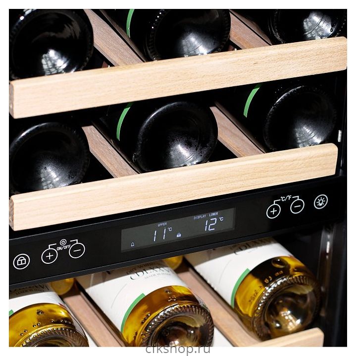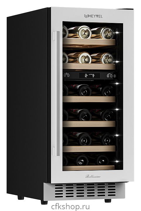 Винный шкаф MEYVEL MV28-KWT2 предназначен для демонстрации, хранения и создания оптимальных условий для сохранения всех вкусовых свойств вина в бутылках на предприятиях общественного питания, торговли, в барах, ресторанах, специализированных магазинах, частных домах или квартирах. Модель оснащена сенсорной панелью управления, 2 электронными термостатами и внутренней белой светодиодной подсветкой. Корпус выполнен из окрашенной в черный цвет стали, дверь - из тройного стекла с УФ защитой с белой рамкой, полки - из массива бука.