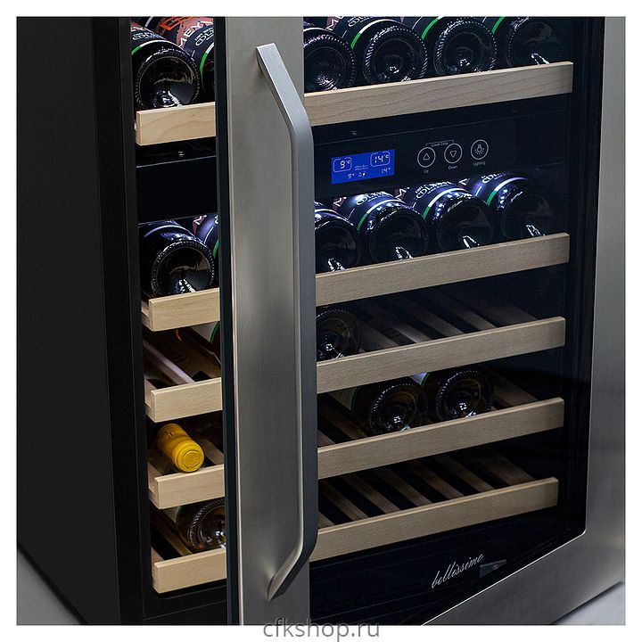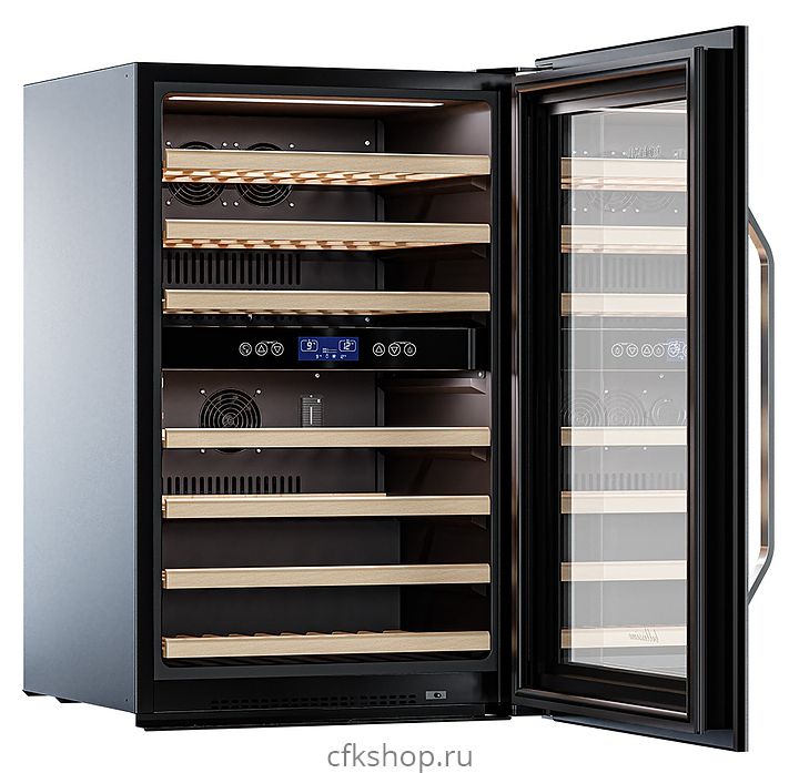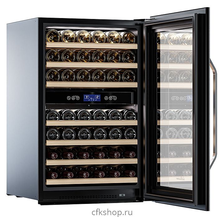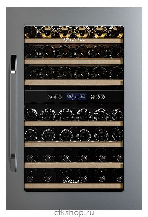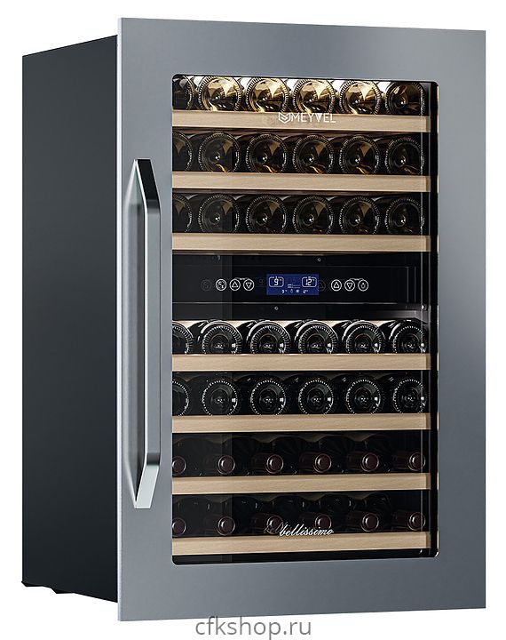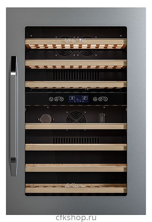 Винный шкаф MEYVEL MV42-KSB2 предназначен для демонстрации, хранения и создания оптимальных условий для сохранения всех вкусовых свойств вина в бутылках на предприятиях общественного питания, торговли, в барах, ресторанах, специализированных магазинах, частных домах или квартирах. Модель оснащена сенсорной панелью управления, 2 электронными термостатами и внутренней светодиодной подсветкой. Корпус выполнен из окрашенной в черный цвет стали, дверь - из двойного стекла с УФ защитой со стальной рамкой, полки - из массива бука.