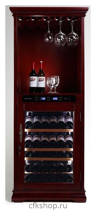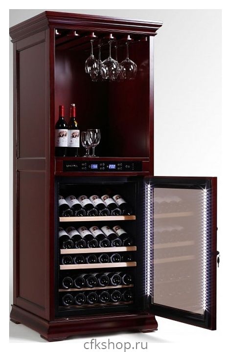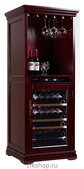 Винный шкаф MEYVEL MV46-WM1-BAR-C предназначен для демонстрации, хранения и создания оптимальных условий для сохранения всех вкусовых свойств вина в бутылках на предприятиях общественного питания, торговли, в барах, ресторанах, специализированных магазинах, частных домах или квартирах. Модель оснащена электронной панелью управления, электронным термостатом и светодиодной подсветкой. Корпус выполнен из обшитой деревом стали, дверь - из деревянной рамы и тройного стекла с защитой от ультрафиолетовых лучей, полки - из массива бука, ручка двери - из стали.