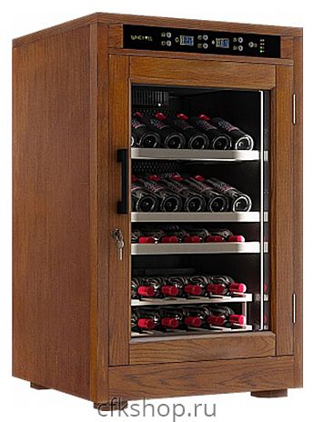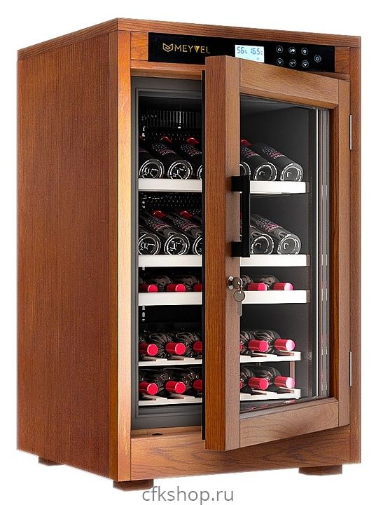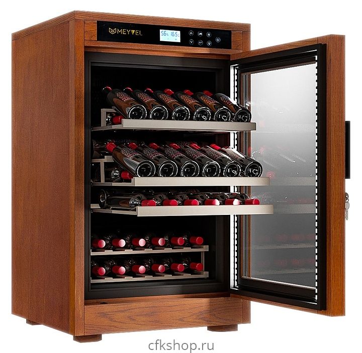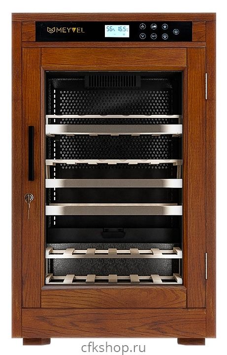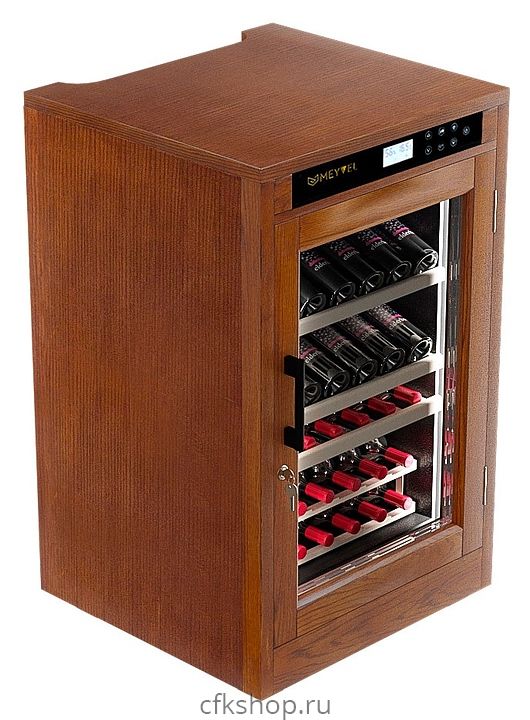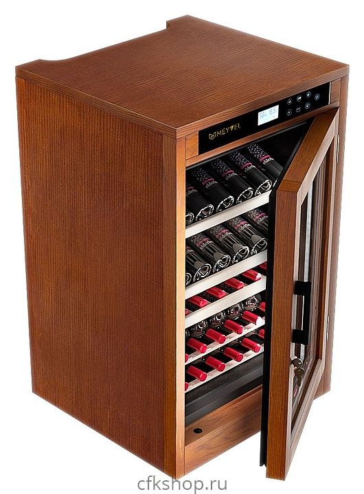 Винный шкаф MEYVEL MV46-WN1-M предназначен для демонстрации, хранения и создания оптимальных условий для сохранения всех вкусовых свойств вина в бутылках на предприятиях общественного питания, торговли, в барах, ресторанах, специализированных магазинах, частных домах или квартирах. Модель оснащена сенсорной панелью управления, электронным термостатом и светодиодной подсветкой. Корпус выполнен из обшитой деревом стали, дверь - из деревянной рамы и двойного стекла с защитой от ультрафиолетовых лучей, полки - из массива бука.