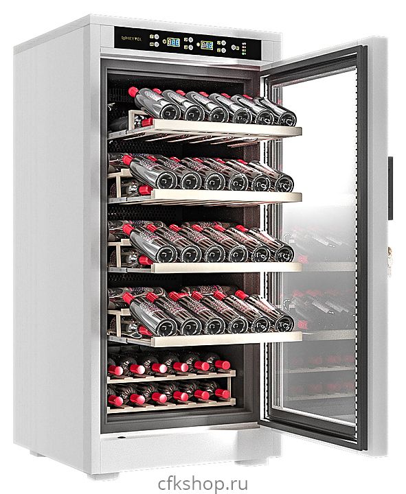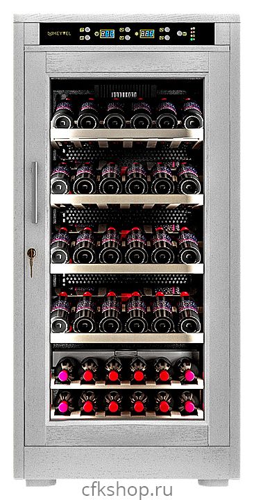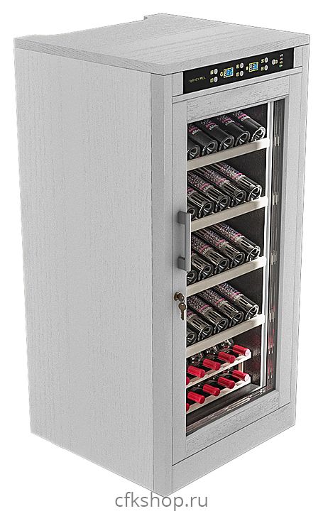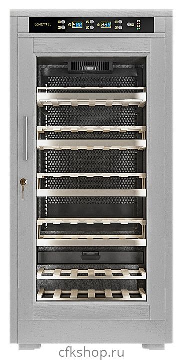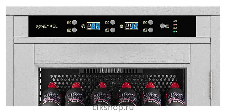 Винный шкаф MEYVEL MV66-WW1-M предназначен для демонстрации, хранения и создания оптимальных условий для сохранения всех вкусовых свойств вина в бутылках на предприятиях общественного питания, торговли, в барах, ресторанах, специализированных магазинах, частных домах или квартирах. Модель оснащена сенсорной панелью управления, электронным термостатом и светодиодной подсветкой. Корпус выполнен из обшитой белым американским дубом стали, дверь - из деревянной рамы и двойного стекла с защитой от ультрафиолетовых лучей, полки - из массива бука, ручка двери - из стали.