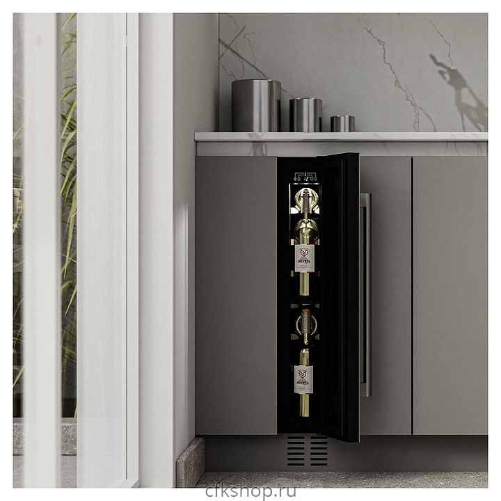 Винный шкаф MEYVEL MV9-KST1 предназначен для демонстрации, хранения и создания оптимальных условий для сохранения всех вкусовых свойств вина в бутылках на предприятиях общественного питания, торговли, в барах, ресторанах, специализированных магазинах, частных домах или квартирах. Модель оснащена сенсорной панелью управления, электронным термостатом и светодиодной подсветкой. Корпус и ручка выполнены из стали, дверь - из стальной рамы и тройного стекла с защитой от ультрафиолетовых лучей, полки - из массива бука.