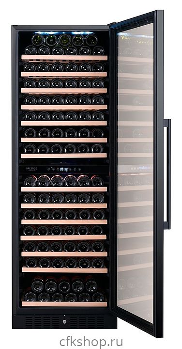 Винный шкаф Temptech Prestige PRES180DB предназначен для охлаждения, хранения и демонстрации бутилированного вина в отелях, винных магазинах, на предприятиях общественного питания и торговли. Модель оснащена сенсорной панелью с дисплеем для регулировки температуры и освещения, 14 выдвижными полками, дверью с замком, фильтром с активированным углем и белой светодиодной подсветкой. Дверца выполнена из трехслойного стекла с защитой от УФ-лучей, передняя панель - из черного стекла, полки - из бука.