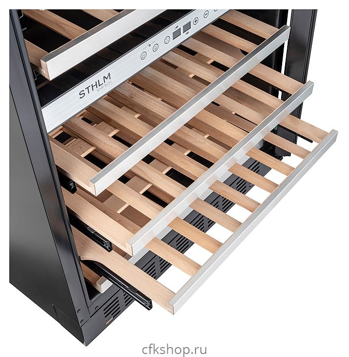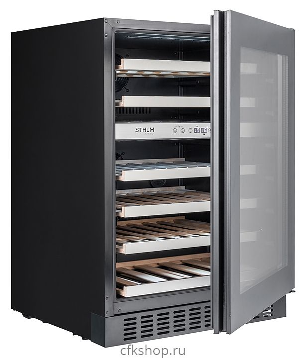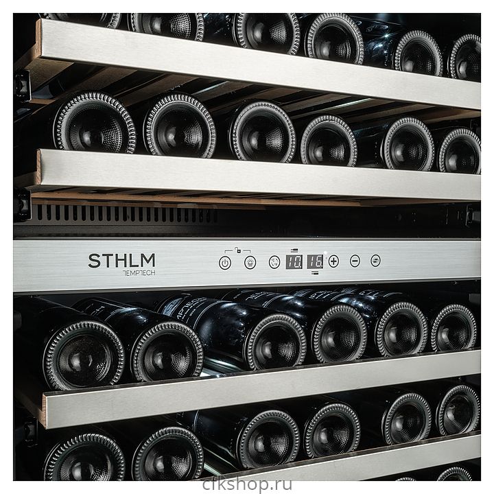 Винный шкаф Temptech STHLM STX60DRB предназначен для охлаждения, хранения и демонстрации бутилированного вина в отелях, винных магазинах, на предприятиях общественного питания и торговли. Модель оснащена сенсорной панелью с дисплеем для регулировки температуры и освещения, 6 выдвижными полками, дверцей со встроенной ручкой, фильтром с активированным углем и белой светодиодной подсветкой. Дверца выполнена из трехслойного стекла с защитой от УФ-лучей, передняя панель - из черного стекла, полки - из необработанного бука с деталями из нержавеющей стали.