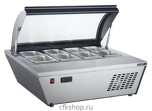 Витрина для мороженого Cooleq ID-8 используется на предприятиях общественного питания и торговли для демонстрации и хранения мороженого, сорбета и йогурт-мороженого. Модель оснащена регулятором температуры и стеклянной дверцей. Корпус выполнен из нержавеющей стали, крышка - из стекла.