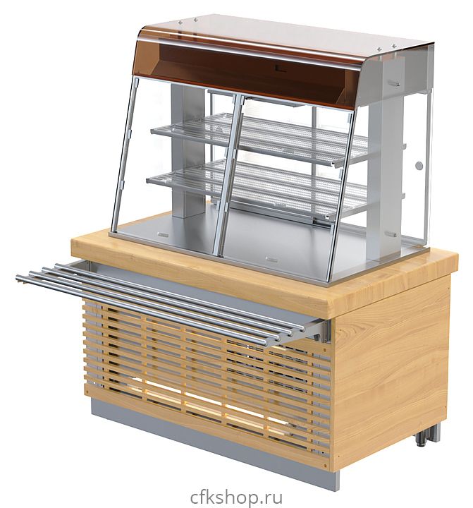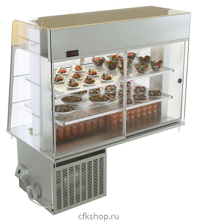Холодильная витрина ATESY Регата ХВ-1200-1370-02 используется на предприятиях общественного питания и торговли для кратковременного хранения, демонстрации и раздачи холодных напитков, салатов, кисломолочных продуктов и других блюд, требующих хранения в охлажденном состоянии. Модель оснащена 2 вместительными съемными перфорированными полками. Столешница выполнена из нержавеющей стали, боковые стенки, крыша витрины и самозакрывающиеся дверцы со стороны покупателя - из стекла толщиной 6 мм, двери-«купе» со стороны обслуживающего персонала - из стеклопакетов.