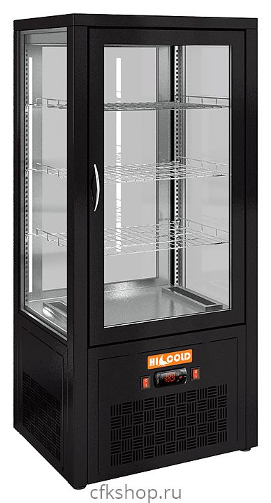Холодильная витрина HICOLD VRC 100 Black используется на предприятиях общественного питания и торговли для демонстрации, охлаждения и кратковременного хранения напитков, салатов, десертов и других готовых блюд и скоропортящихся продуктов. Модель оснащена 3 вместительными полками. Корпус выполнен из окрашенной стали и однокамерного стеклопакета.