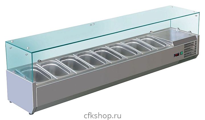 Холодильная витрина Koreco VRX 1800-330 (335I) предназначена для демонстрации, охлаждения и кратковременного хранения салатов, закусок, ингредиентов для пиццы и т.д. на предприятиях общественного питания и торговли. Корпус выполнен из нержавеющей стали AISI 304, крышка - из закаленного стекла со специальным крепежом.
