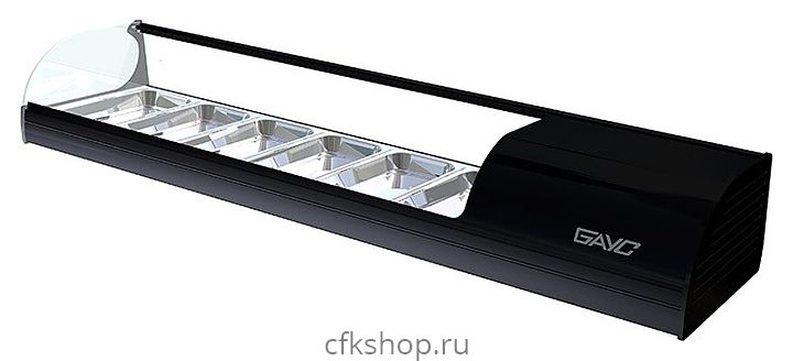 Холодильная витрина Movilfrit (Pira) TOP 6 307016 предназначена для демонстрации и кратковременного хранения готовых блюд и напитков на предприятиях общественного питания и торговли. Модель оснащена светодиодной подсветкой. Корпус выполнен из черного анодированного алюминия, верхняя часть - из закаленного стекла, внутренняя часть - из нержавеющей стали AISI 304.