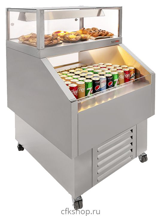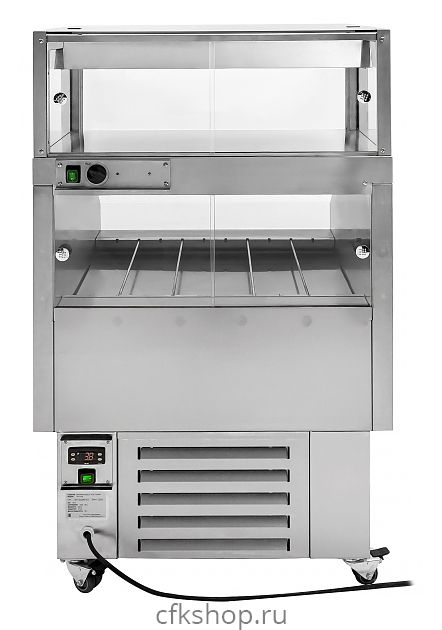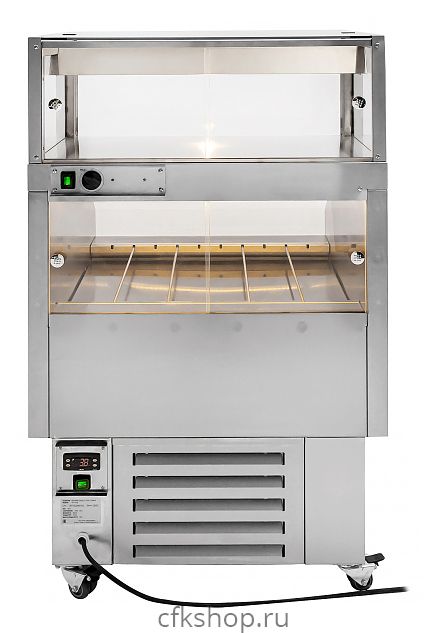 Комбинированная витрина RoboLabs ПХТ-075Д предназначена для хранения и демонстрации различной продукции в теплом состоянии. Модель оснащена керамическими нагревающими элементами сверху и охлаждаемой поверхностью с утопленной ванной с разделителями - снизу. Конструкция выполнена из нержавеющей стали AISI 430, нижняя часть - из оцинкованной стали.