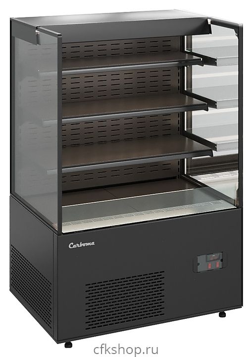 Открытая кондитерская витрина Carboma KC71-130 VV 1,2-2 COSMO используется на предприятиях общественного питания и торговли для демонстрации, охлаждения и кратковременного хранения напитков, тортов, пирожных и других кондитерских изделий и гастрономических товаров. Модель оснащена 3 регулируемыми по уровню металлическими полками со встроенными ценникодержателями и регулируемыми ножками высотой от 30 до 50 мм. Корпус выполнен из стали и пластика, термоизоляция корпуса - из пенополиуретана, остекление - из структурного стеклопакета.