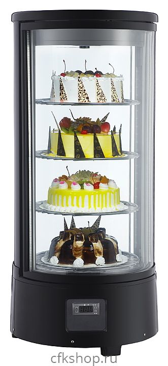 Кондитерская витрина Koreco RTC72 используется на предприятиях общественного питания и торговли для демонстрации, охлаждения и кратковременного хранения тортов, пирожных и других кондитерских изделий. Корпус и несущие конструкции выполнены из черного ABS-пластика и пластифицированного в тон металлического каркаса, дно камеры - из нержавеющей стали AISI 304, фронтальное полукруглое стекло - из однокамерного стеклопакета, кассета и решетчатые полки - из полированной нержавеющей стали.