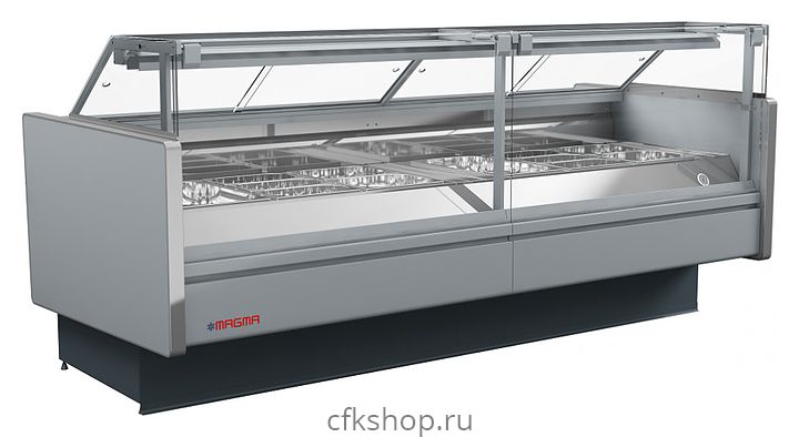 Тепловая витрина MAGMA Beryl 2500 предназначена для демонстрации, подогрева и кратковременного хранения пиццы, булочек, пирогов и различных закусок на предприятиях общественного питания и торговли. Модель оснащена LED-освещением внутреннего объёма. Корпус и поддоны изготовлены из высококачественной нержавеющей стали, суперструктура - из полнотелого алюминиевого профиля, фронтальная панель - из закаленного ударопрочного стекла на гидроподъемниках, столешница - из нержавеющей стали повышенной прочности.