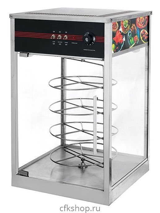 Тепловая витрина Rosso HW-815 предназначена для демонстрации и поддержания блюд в горячем состоянии на предприятиях общественного питания и торговли. Модель оснащена термостатом, декоративной лампой освещения для лучшего вида пищевых продуктов, поворотным переключателем для выбора температуры и панорамным обзором.
