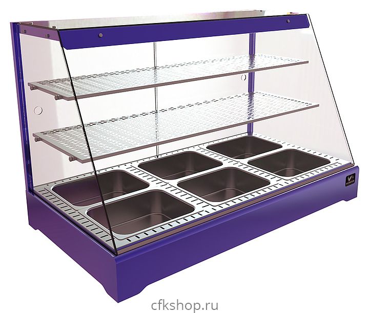 Тепловая витрина Кобор CR2-117H серии Standart предназначена для демонстрации, подогрева и поддержания в теплом состоянии различных блюд на предприятиях общественного питания и торговли. Модель оснащена перфорированными полками 1120х350 и 1120х280 мм и подсветкой.