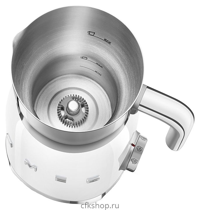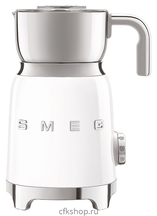 Вспениватель молока Smeg MFF01WHEU используется в частных домах и квартирах для приготовления молочной пены для кофейных напитков и горячего шоколада. Модель выполнена в стиле 50-х годов. Корпус и кувшин изготовлены из нержавеющей стали, крышка - из тритана.