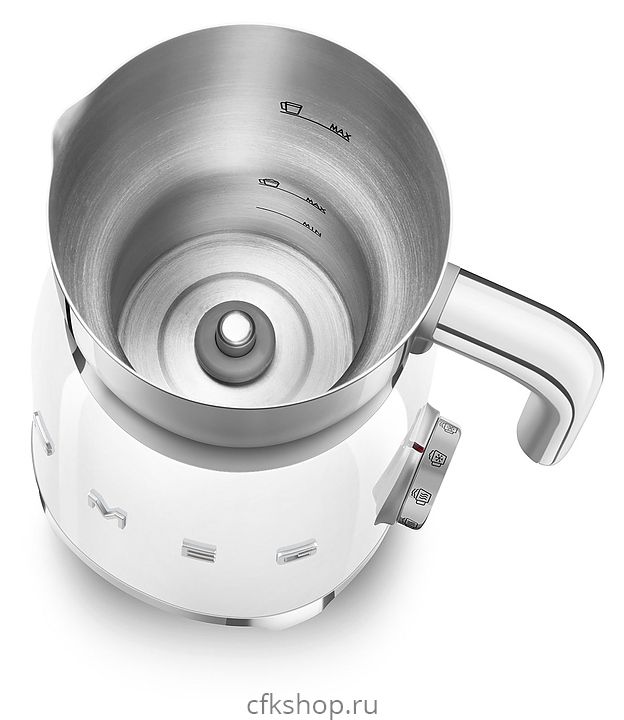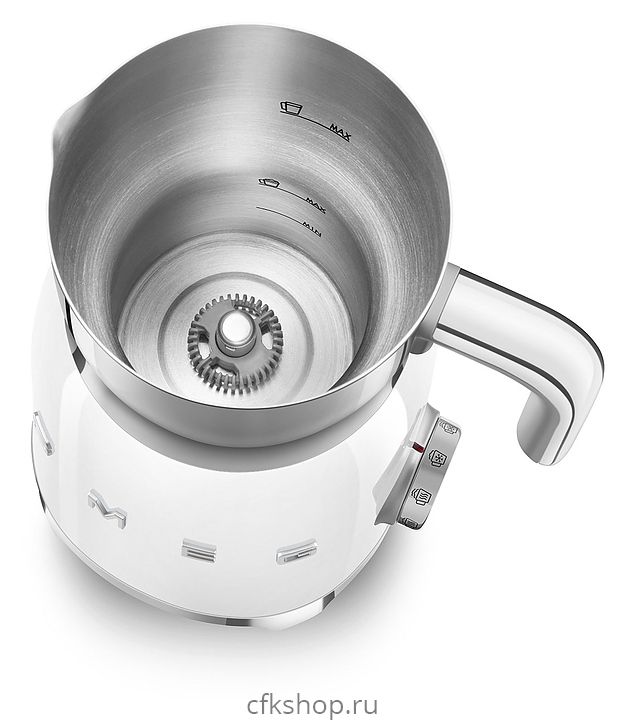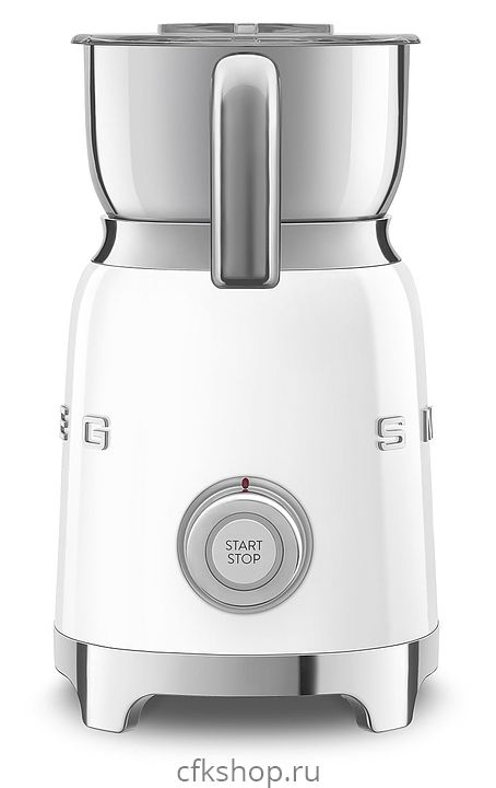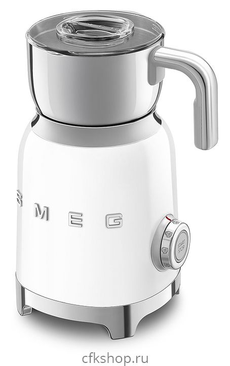 Вспениватель молока Smeg MFF11WHEU используется в частных домах и квартирах для приготовления молочной пены для кофейных напитков и горячего шоколада. Модель выполнена в стиле 50-х годов. Корпус и кувшин изготовлены из нержавеющей стали, крышка - из тритана, ручка - из пластика.