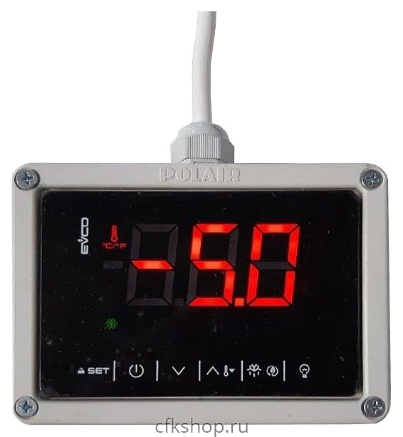 Выносной пульт управления предназначен для холодильных сплит-систем и моноблоков POLAIR. Плата контроллера располагается в самом моноблоке или внешнем блоке сплит-системы, пульт - на любом удобном для пользователя месте, но не далее 10 метров от камеры (расстояние ограничено длиной кабеля).
