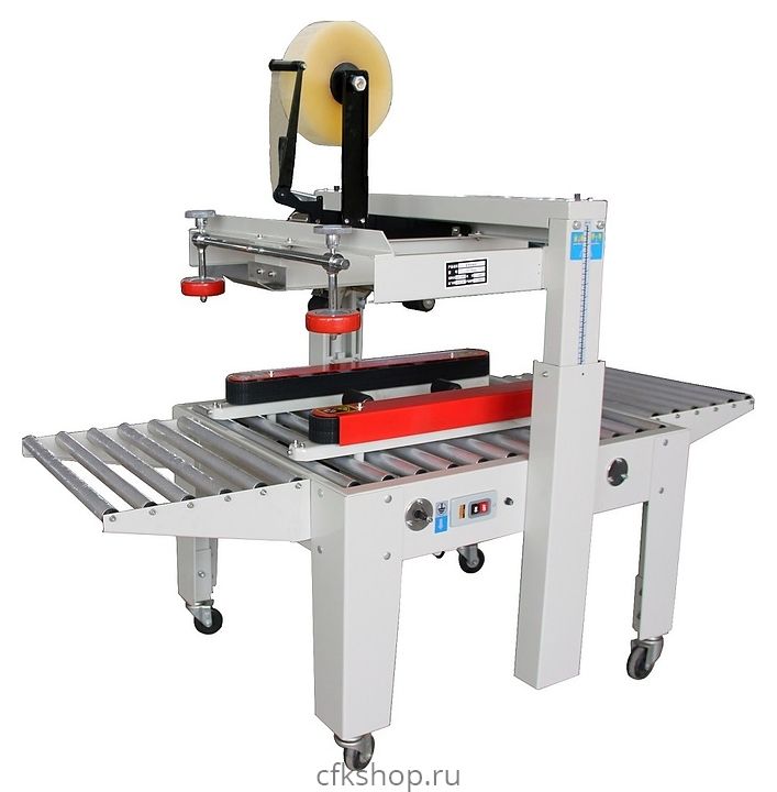 Полуавтоматический заклейщик Hualian FXJ-5050A используется на предприятиях различных отраслей для герметизации упаковочных картонных коробов клейкой лентой. Модель оснащена рабочим столом с сегментной роликовой поверхностью, 2 вертикальными направляющими с ленточными конвейерами снизу, 2 центрирующими роликами сверху, рулонодержателем для клейкой ленты и панелью управления на боковой стенке.