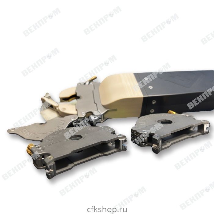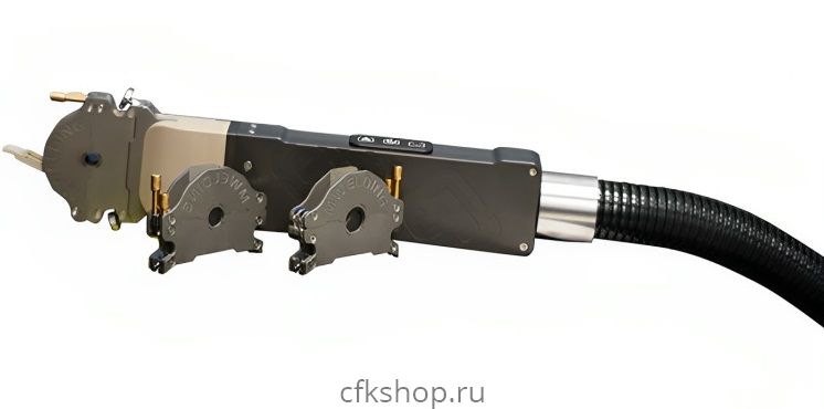 Головка этого типа имеет значительно уменьшенные радиальный и осевой размеры. Головка спроектирована специально для сварки труб малых диаметров. Размеры сварочной головки позволяют сваривать изделия с прямыми участками околошовной зоны длиной от 6 мм. Зажимные кассеты и гибкие вставки для зажима труб соответствуют номенклатуре диаметров труб, которые используются в полупроводниковой промышленности и в сетях газов высокой чистоты.Несимметричная форма головки позволяет приваривать фитинги с малым вылетом. Крепежные блоки гарантируют точное центрирование и надежное закрепление труб всего диапазона малых диаметров.