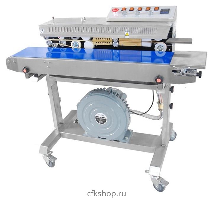 Конвейерный роликовый запайщик Hualian FRMQ-1010III используется на производственных площадках, предприятиях пищевой промышленности, общественного питания и торговли для запайки пакетов из термосвариваемых материалов в горизонтальном положении. Модель оснащена механической панелью управления и подставкой с подвижными колесиками для напольной установки. Корпус выполнен из нержавеющей стали.