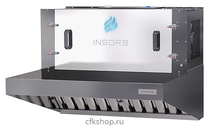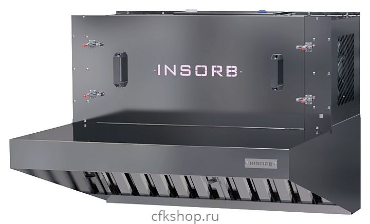 Зонт-рециркулятор INSORB JET 1000 предназначен для очистки воздуха от жира, примесей, микроорганизмов и характерных запахов ресторанной кухни на предприятиях пищевой промышленности, общественного питания и торговли путем улавливания адсорберами и разрушения с помощью окисления озоном вредных и пахучих соединений. Корпус выполнен из высококачественной оцинкованной стали.