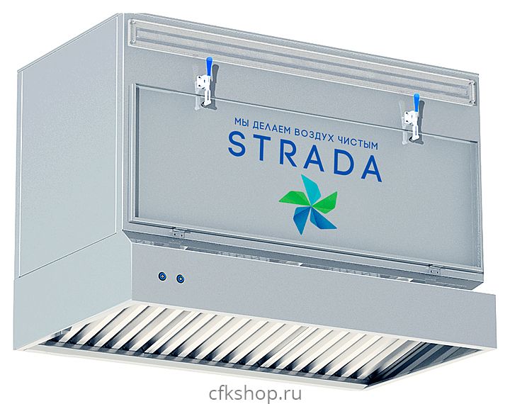 Вытяжной зонт-рециркулятор STRADA ЗОНТ 2,0 предназначен для очищения воздуха от излишков пара, дыма, жира и продуктов горения и обеспечения его рециркуляции на предприятиях общественного питания и торговли. Прибор обеспечивает 95% удаление запахов, жира, сажи и дыма. Зонт устанавливается над тепловым оборудованием. Модель оснащена 2 вентилятором и 4 светильниками. Корпус выполнен из нержавеющей стали AISI 430.